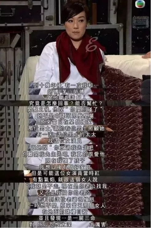 而據TVB藝人江美儀爆料,某女星是因為搶別人老公,導致懷雙胞胎妻子跳樓,一屍三命怨恨太深,連茅山師傅都化解不了。