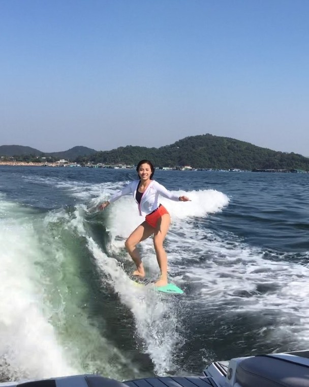 近日就輪到落選港姐伍樂怡(Kelly)加入戰團,她上載一條玩Wakesurf(無繩滑水)片段於社交網,並寫道:「抓緊夏天的尾巴。」而穿上鮮紅色褲仔的她於片段初已面對鏡頭展現燦爛笑容,未幾便鬆手放開繩索,觀其平衡力不俗,似乎也不是初玩者,絕對有姿態有實際。
