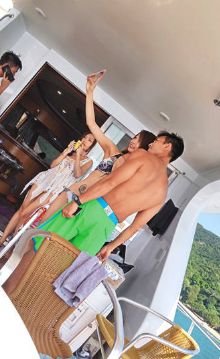 就在眾人猜測男模是否是顏子菲的男朋友時,她又被拍到和一班俊男美女坐遊艇出海度假。