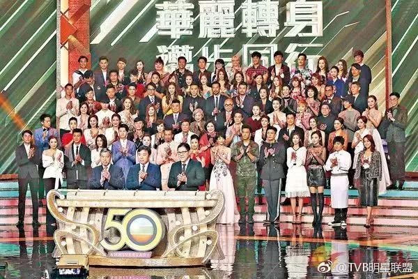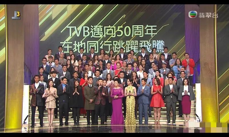今年TVB亮燈儀式嘅口號系:《TVB 50+1周年再出發》,TVB全臺藝人紛紛出動,仲系同往年一樣,先喺記者同傳媒面前,嚟個大合照。今年所有TVB小生、花旦嘅排位,自然又有咗新嘅變化,鄭裕玲一姐冇嚟,咁汪明荃當然仍是最中間嘅C.位。