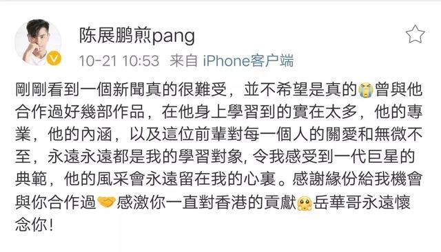 今日陳展鵬也發微博悼念岳老。