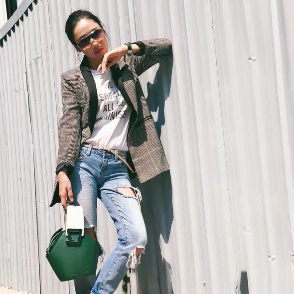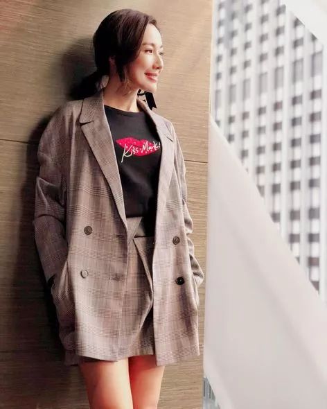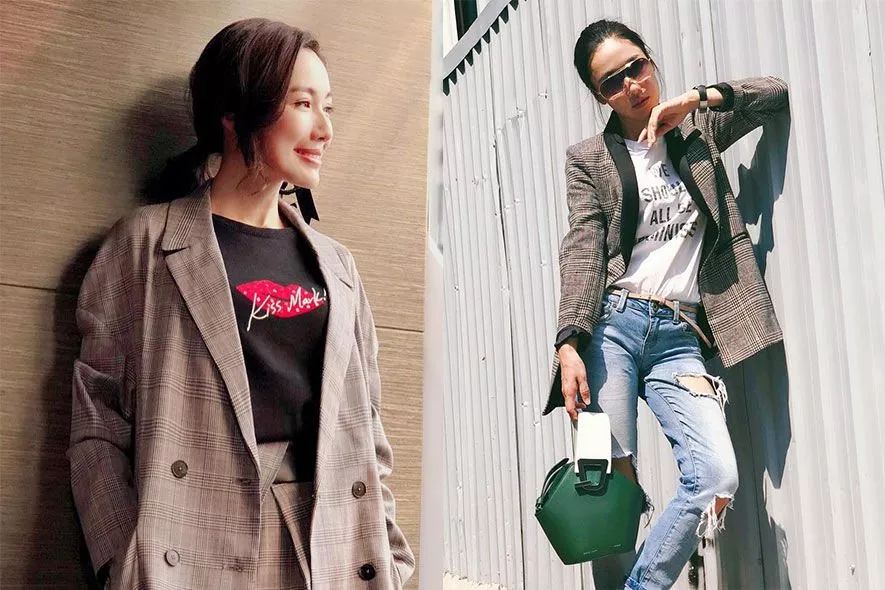 熱愛時尚打扮的李施樺,當然有入手今個秋冬大熱的西裝外套,她以簡約的短袖和牛仔褲作配襯,演繹休閒別致風格。