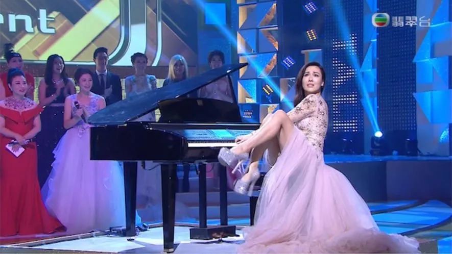 李施嬅在TVB一直默默耕耘,她除了能夠演戲,也彈得一手好琴,更不介意拋下美女形象,在某年臺慶忘我的邊踢腿邊彈鋼琴。
