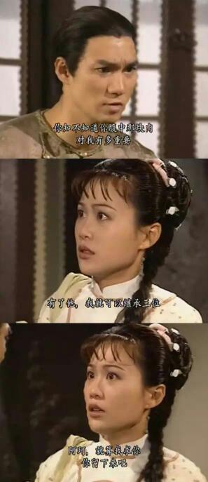 這扮相絕對令人印象深刻,郭耀明將這個角色塑造的很成功,以至於看到他的第一念頭就是鄭克爽。 鄭克爽剛出場時風度翩翩,帥氣救下要上吊的陳珂,陳珂囙此對鄭克塽一見傾心,而鄭克爽也傾慕阿珂的美色,郎才女貌多養眼的一對。