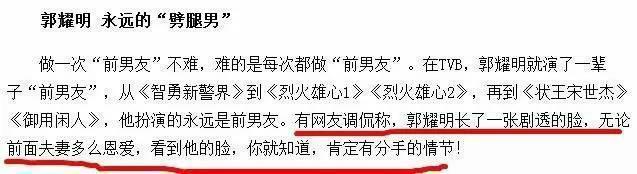 不過郭耀明在tvb中演的角色真心蠻悲劇的,不是前男友,就是大反派,角色簡直就是tvb萬年前男友的設定啊。