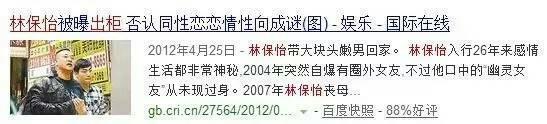 06年香港男模侯維德還在部落格上以日記的形式爆料同志情史,裡面就有提到和林保怡的斷背情。