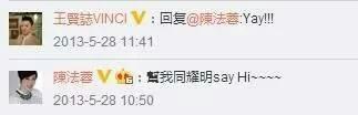 陳法蓉還在微博下評論“幫我向耀明問好”。
