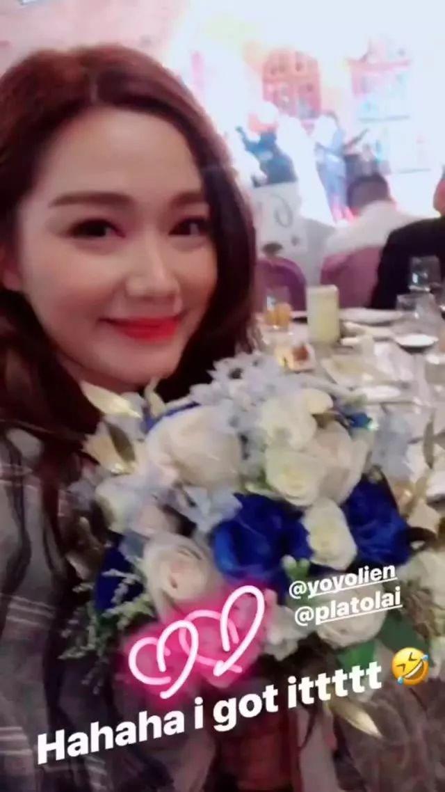 昨日,湯洛雯就喺社交網上上載咗幾段短片,其中不僅有新娘嘅一班舞蹈員朋友火辣勁舞,仲有好緊張刺激嘅搶花球環節。只見湯洛雯企到最前排,喺花球拋出之際,眼明手快嘅佢一個箭步就踩上去,成功搶得花球。搶得花球嘅湯洛雯宛如細路一般,開心嘅高舉勝利品,仲自封為“籃板王后”!