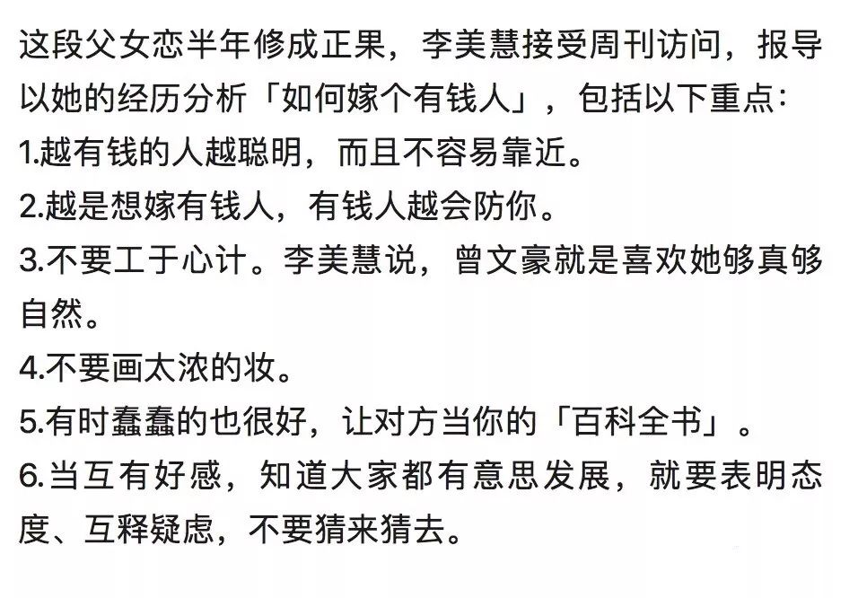 SO,以嫁個有錢人為標的嘅妹子們,好對自己做個測評,除咗青春、身材、面之外,重有幾多可以激起有錢佬“幫襯欲”嘅嘢。