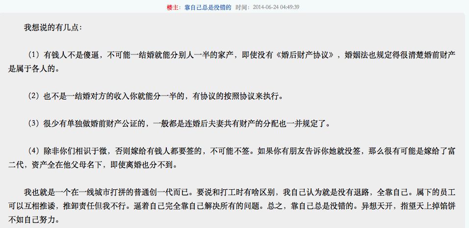 唔好講愛情保質期唔長,為愛而嫁嘅都有悲劇。但系至僆妹方嫁嘅時候,都系開心嘅丫,而唔系步步為營,同在職場噉,盤算住點近富人,定啲嚟佢心,由佢銀包入面掏錢。