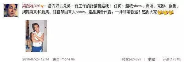 噉睇嚟梁烈唯喺TVB受重視程度可謂相當低,唔怪得有一段時間,佢重微博上發出信息穩工。