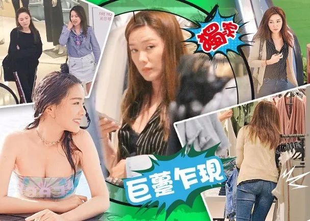 身穿黑色直間條恤衫及牛仔褲的她,發福不少,除雙下巴盡現,巨臀乍現。