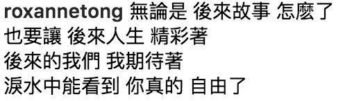 湯洛雯另一張眼神憂怨望向遠方的相,好像滿懷心事,再配上五月天《後來的我們》的歌詞,最後一句“淚水中能看到你真的自由了”似是若有所指。