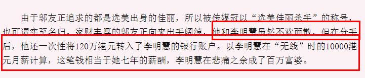 兩個人港姐形象已毀,翁嘉穗成功入豪門,直接退出娛樂圈。鄔友正為平息李明慧怒火,直接120萬存到佢賬戶。