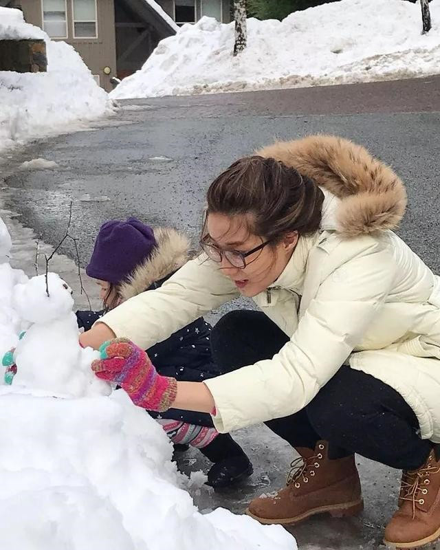 已經嫁作人妻,陞級人母的鐘嘉欣如今就在加拿大定居。育有一子一女的她近日就帶上女兒在屋子外面砌雪人,只見已為人母的鐘嘉欣以素顏出鏡,戴上眼鏡的她依舊少女味十足,哈~她還留言說:“Kelly,do you want to build a snowman?”並且還將寶貝女兒的“大作”放上網,十分搞怪!