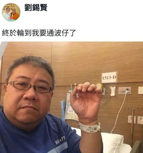 現年58歲藝人劉錫賢,呢排喺社交網站上載咗一張自己身在病房嘅相,令唔少網民擔心佢嘅身體狀況。劉錫賢留言表示:「終于輪到我要通波仔喇!」