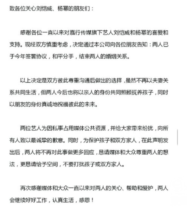 可惜始終敵不過7年之癢,二人終于喺網友嘅猜測下宣布離婚,發出聯合聲明,以親人身份,共同撫養四歲嘅女兒小糯米。