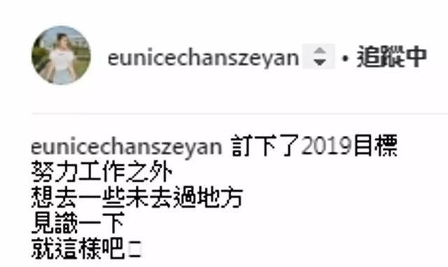 踏入2019年,未知陳詩欣有咩新嘅工作規劃呢?呢日,佢就喺社交網與fans同網民分享今年嘅工作目標,佢留言話:「訂落咗2019年嘅目標,努力做嘢之外,想去一啲未見過嘅地方,見識一下,就噉啦!」