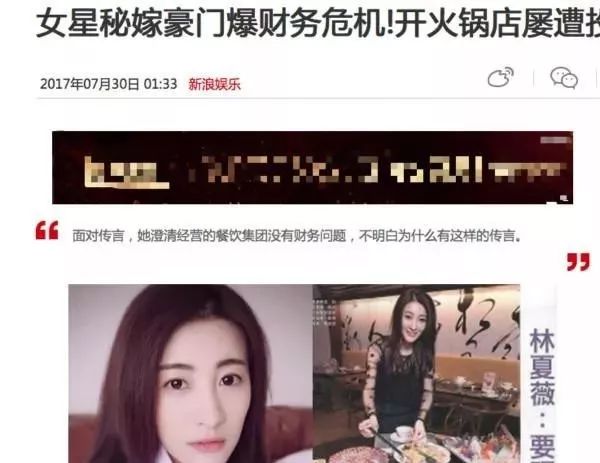 但是好景不長,沒多久飯店被傳出因財務危機屢遭顧客投訴,店鋪險些倒閉,林夏薇雖然當時澄清是謠言,每家店鋪都在正常運營,但事後林夏薇重返演藝圈賺錢彌補虧損,不得不讓人反思林夏薇澄清事實的真實性。