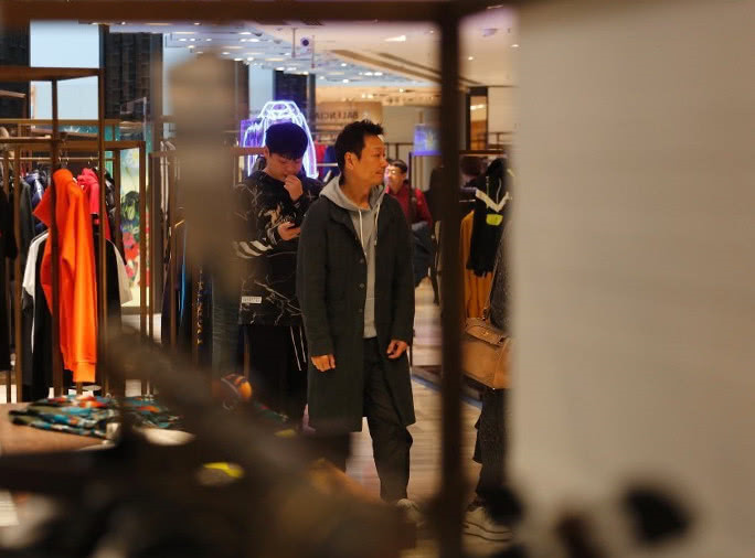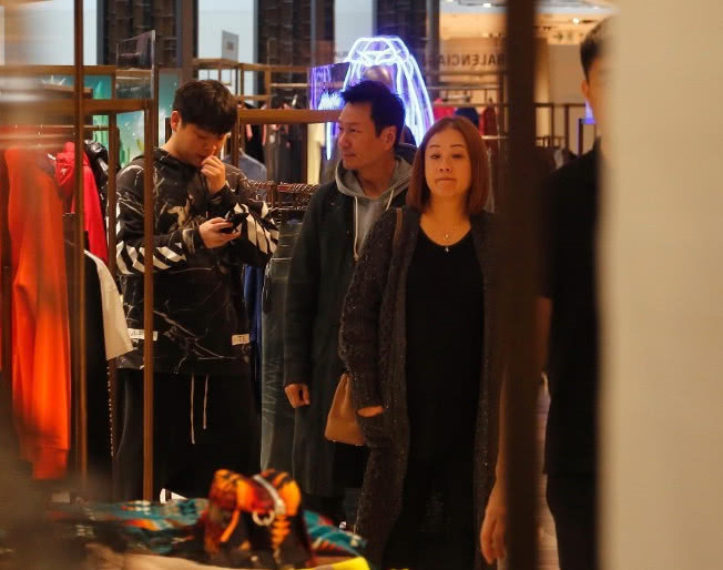 除了他們夫妻倆外,原來他們甚少露面的兒子也有一起陪同出來購物。21歲兒子一直看著手機,還用嘴咬指甲。