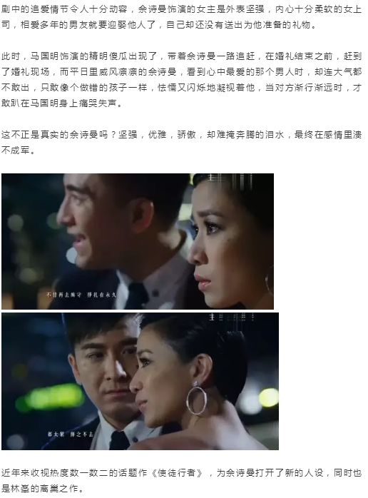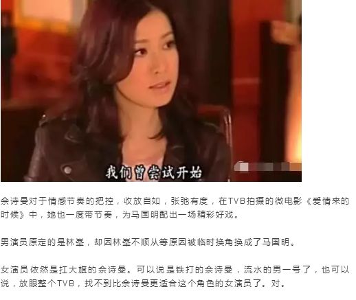 佘詩曼值得品味嘅作品仲有好多好多,入行多年嘅佢,系TVB公認嘅嗲精,都因為風月緋聞而畀稱為繼郭羨妮之后嘅“人妻公敵”,但系講到尾,都系因為佘詩曼天生嬌嗔,惹人憐愛。