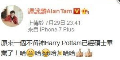 而校長的兒子譚曉風今年已22歲,前年牛津大學碩士畢業,譚詠麟飛到英國參與兒子的畢業禮。