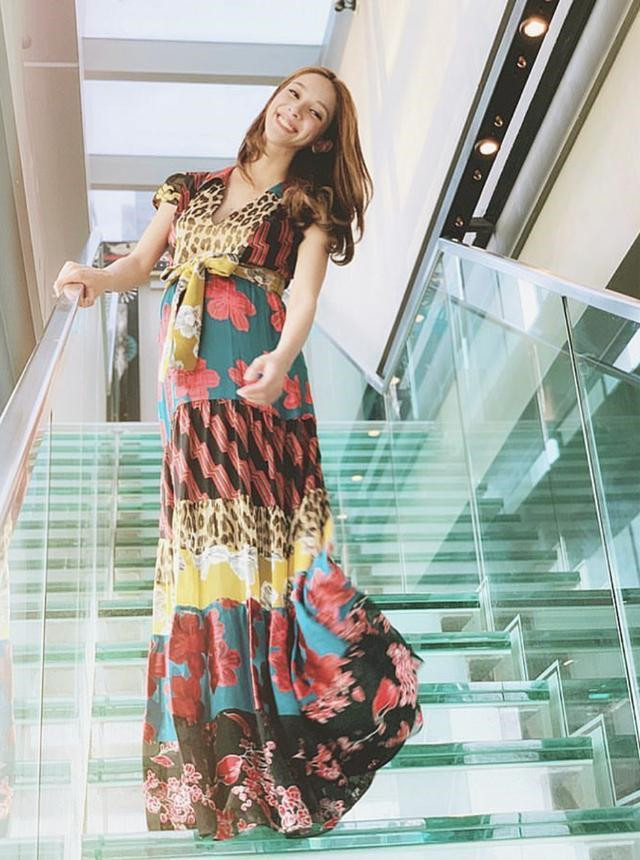 隨後陳凱琳又接著上載了一張側身照片,曬巨肚。從這張照片中也可以看出陳凱琳的肚子真的很大了,目測也最少已經懷孕7個月了!同一時間陳凱琳也留言寫下了一些情話給老公鄭嘉穎:“When he tells you he loves your pregnancy glow(當他說跟你說喜歡你懷孕的時候)”。