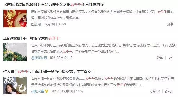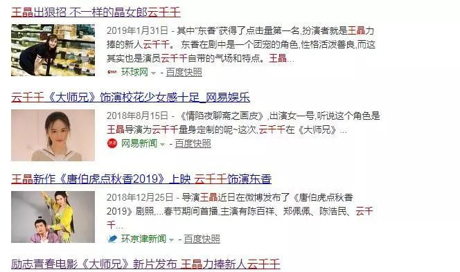 misshk發現由王晶導演或監製的眾多作品中,雲千千的身影多次出現,比如不久前剛上線的網路電影《唐伯虎點秋香2019》,雲千千就在其中飾演東香。