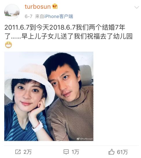 上個月,孫儷發咗一條佢同鄧超結婚七周年嘅微博。