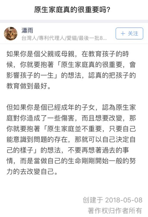 我從來都唔唔認佢原生家嘅影響,原生家庭一定有影響,唔系就唔會有咁多介紹原生家嘅討論。