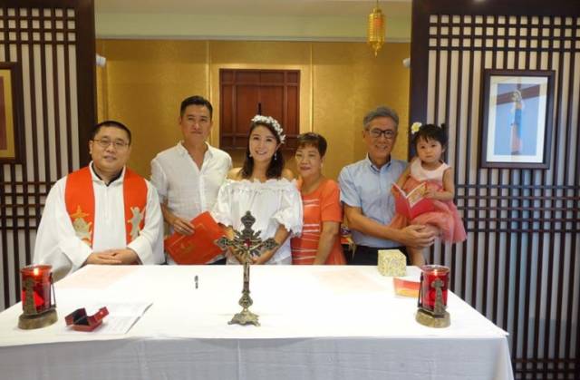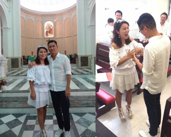先晚,前港姐吳忻熹透過社交網絡上載咗自己系教堂補辦婚禮嘅相,從中所見除咗個女之外,仲有吳忻熹嘅父母、與及約十幾名親友亦有到場見證。喺相中所見,儀式比較從簡,吳忻熹著上白色露膊恤衫同而家、頭戴白花頭飾,老公就以白裇衫相襯。二人喺神父前宣誓與及交換戒指,場面好溫馨。