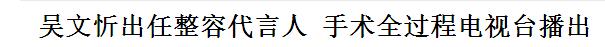 對于成為第一位整容代言人,吳文忻覺得冇咩大唔到,只系身邊嘅人比佢仲緊張。她表示今次應承整容兼做代言人,只系為自己而做,因為佢早就對自己嘅,墊勾鼻同曱甴屎覺得唔滿意,預整容后三至四個禮拜就可同大家見面。