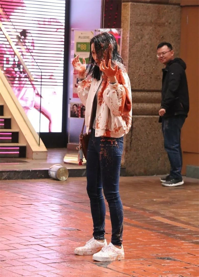日前,藝人湯怡就為TVB的新劇《極道怪咖》拍攝一場被“淋紅油”的戲份,雖然紅油是道具,但是依舊吸引了大批的途人圍觀。可以看到湯怡在就位前一臉緊張,更不停跟導演及演員試位,為求可以一次就過!