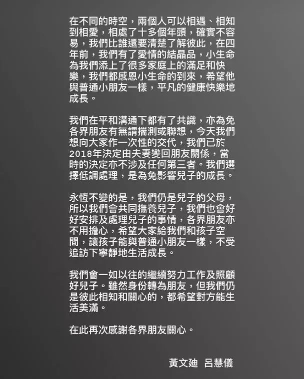 跟住就系我哋睇到嘅離婚聲明。
