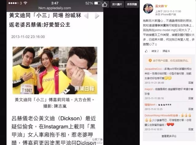 這仲要講返2013年10月,黃文迪喺社交網曬出一男一女拖手相,好似郭富城同方媛當初公開戀情噉樣: