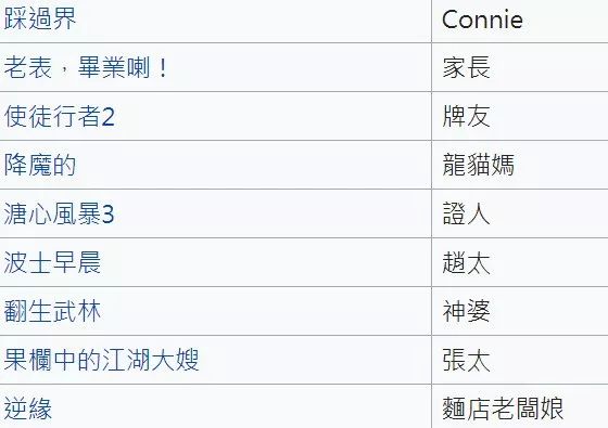 當中包括喺電影《濟公》飾演張曼玉嘅”媽媽生”。
