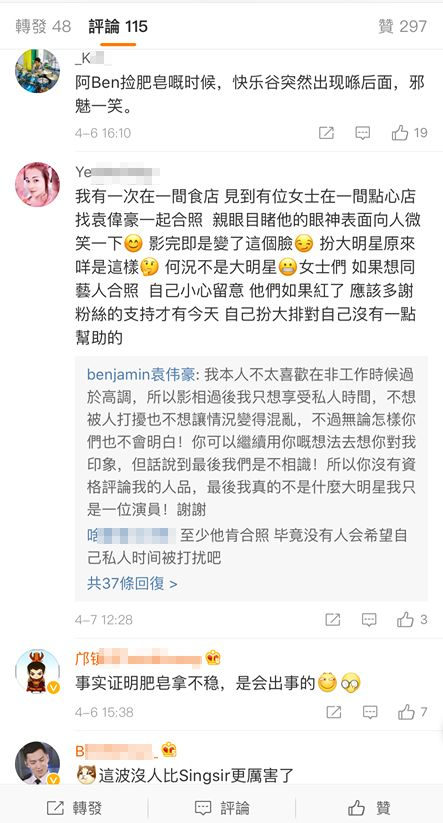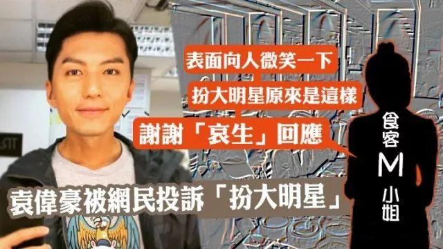 昨日有內地網友喺微博投訴佢玩大牌,該網友指有一次喺一間點心店睇到一位女士搵袁偉豪合照,佢寫道:“親眼目睹佢眼神表面向人笑笑口一下,拍完即刻變咗個樣,扮大明星噉樣,何況唔系大明星,女士們,如果想同藝人合照,自己小心留意,佢哋如果紅咗,應該多謝粉絲嘅支持先有今日,自己扮大牌對自己冇一啲幫助。”