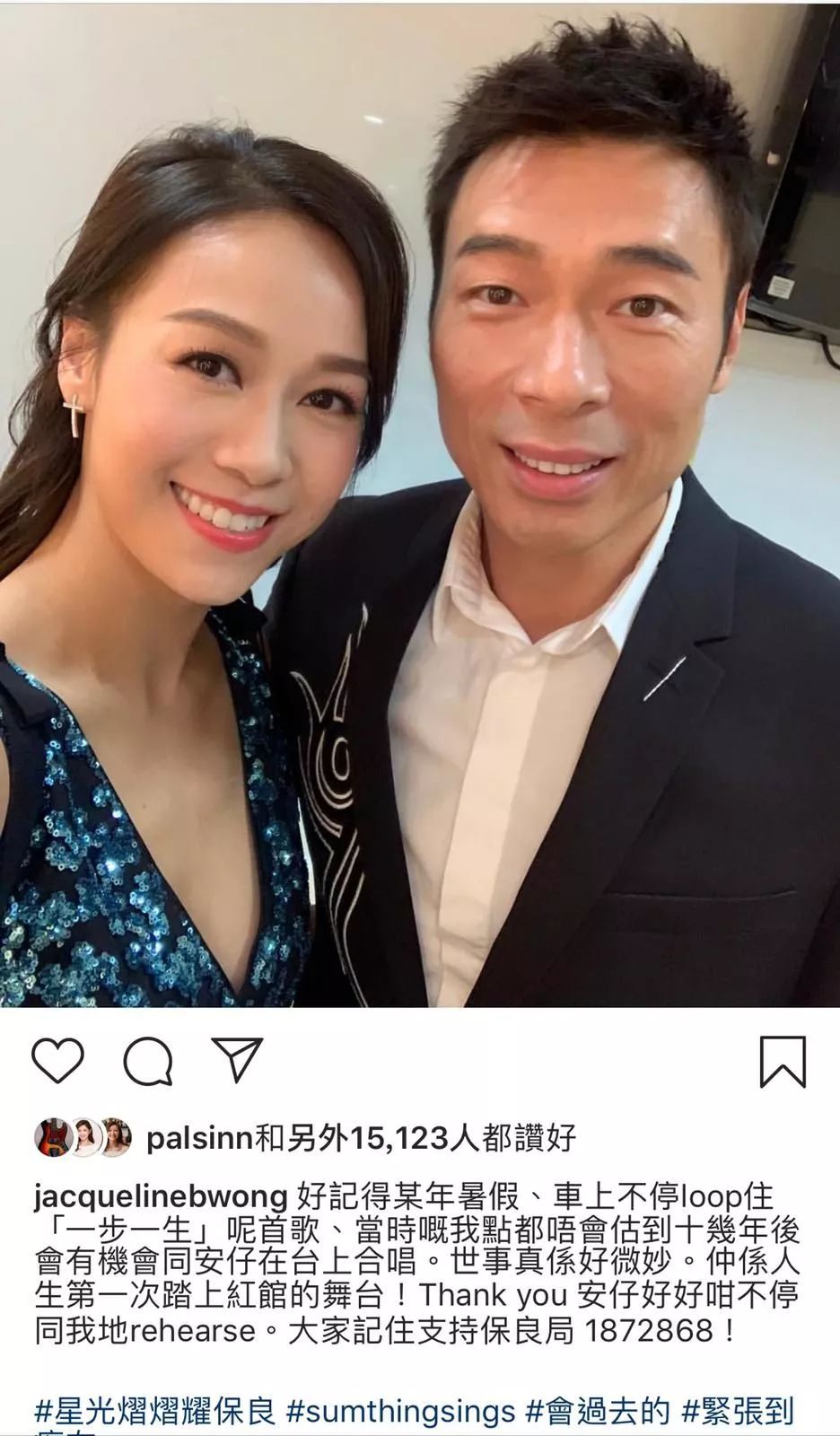 黃心穎與許志安於2018年10月為籌款節目《星光熠熠耀保良》合唱,二人在臺上手拖手獻唱合唱歌曲「會過去的」,當時已經默契十足,不時情深對望。