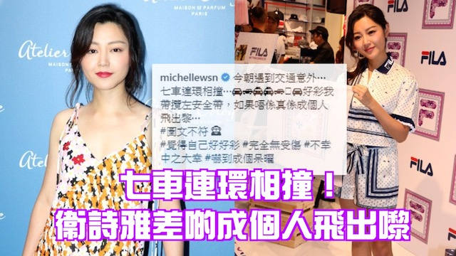 尋晚,藝人衛詩雅突然間喺社交平台發文,指自己遇上咗嚴重嘅交通意外,好彩有安全帶救返一命,最重要嘅系人身安全,好彩冇出咩事。