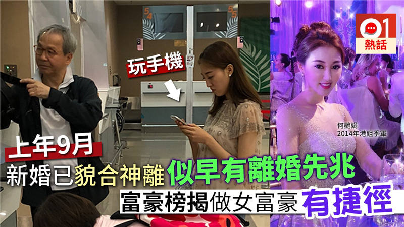 現年27歲嘅2014年港姐季軍何艷娟,喺5月1日突然宣布與67歲澳博營運總裁吳志誠離婚,何艷娟喺IG寫道:「在和平和友好的情況下,我們決定分開了。並說好了大家再見亦是好朋友,並且彼此多謝大家和互相祝福。」令不少網民大感驚訝。