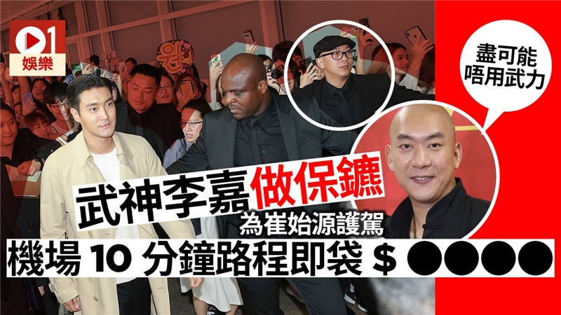 崔始源喺機場現身前後唔到三個字,究竟做保鑣人工有幾多?李嘉拒絕透露,但直言隨時好搵過做藝員。