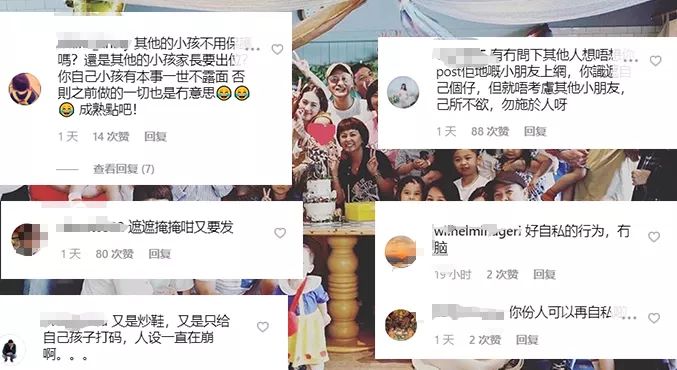 不過言論就引來網友瘋狂議論,更加不乏人身攻擊等偏激言行。原來系佢曬出嘅相中,凈系得佢個仔塊面畀愛心圖案遮住,而其他嘅小朋友就冇,就有網友對此不滿,以至佢社交平台發起混戰。