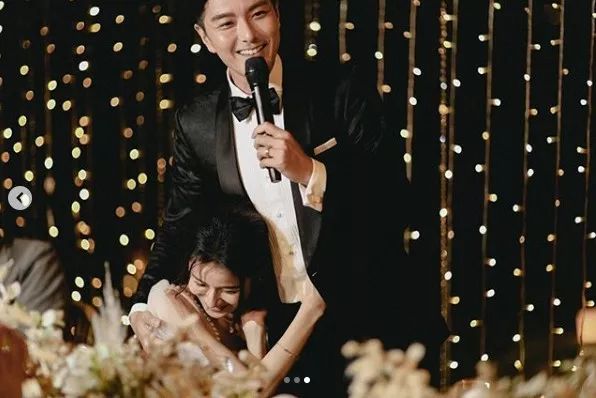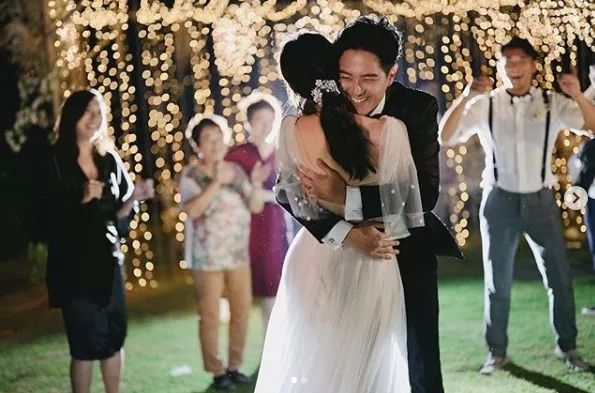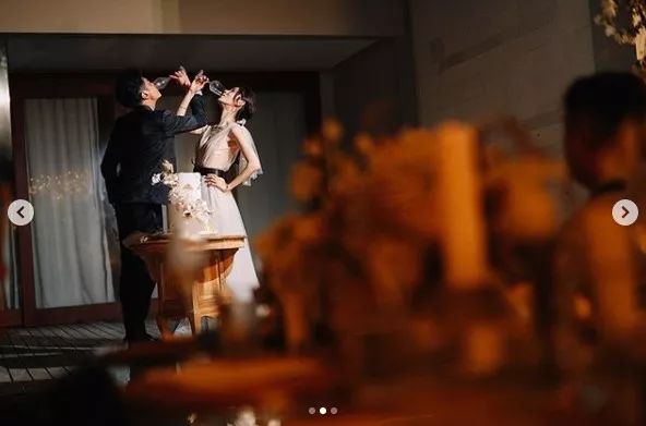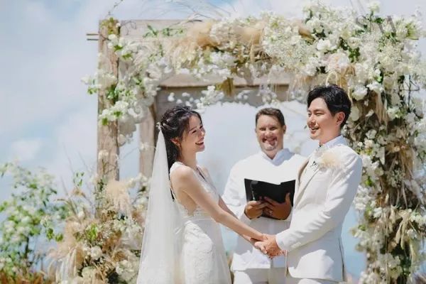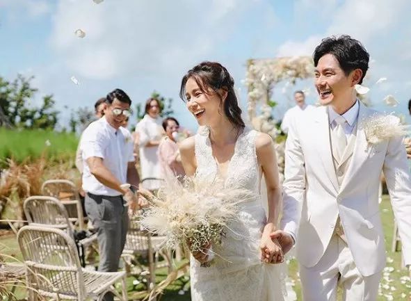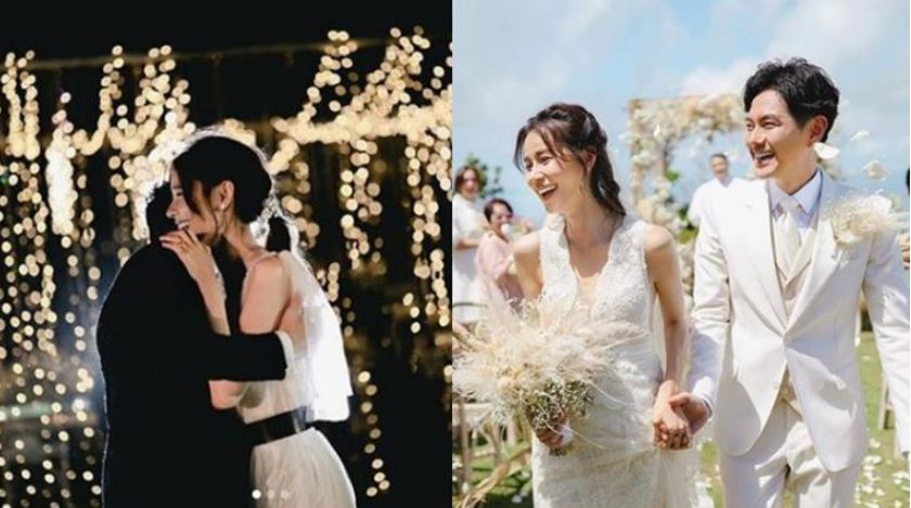 黃翠如同蕭正楠喺27日午間,一齊喺IG上曬出幾張婚禮現場相,兩公婆換上白色情侶婚紗,喺親友見證下笑開懷,據悉兩個人喺五月間喺巴里島補辦婚禮,所拍攝嘅。