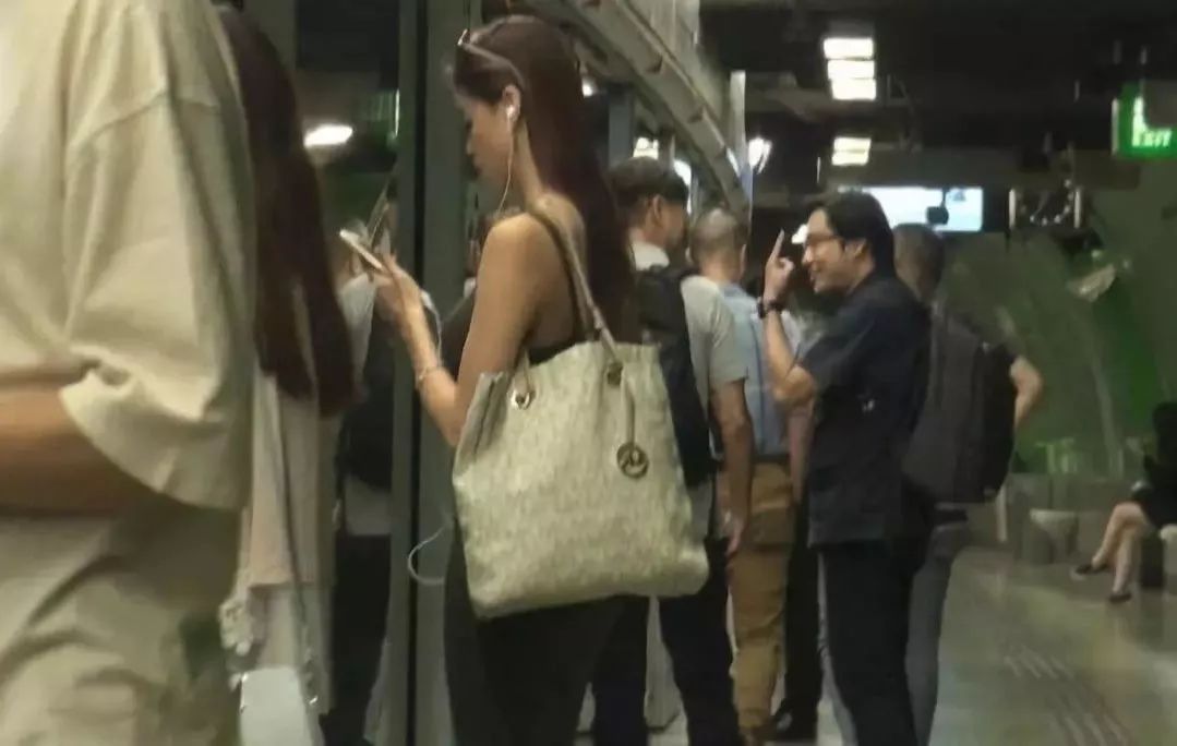 不過今次,就畀港媒同影到喺當日下晝大約六點,化咗靚妝著上錫士低胸吊帶貼身裙嘅雷莊兒,獨自行去乘坐港鐵,期間呢,可能因為天時暑熱,佢唔停用紙巾抹汗。
