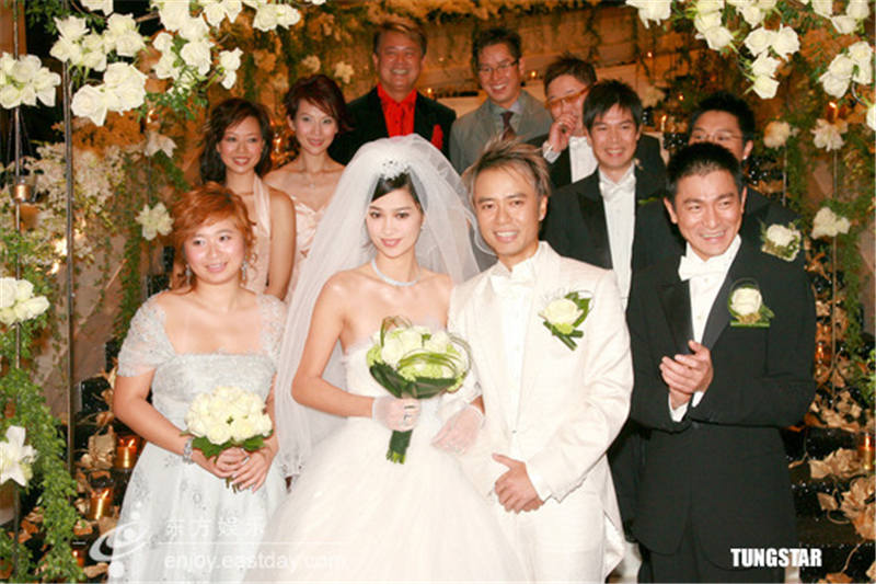 據聞當年佢哋嘅婚禮上,眾星云集,劉德華擔任伴郎,譚詠麟、陳百祥等人擔任主持,梁榮忠、劉偉恒、錢國偉等擔任兄弟團,鐘麗淇、蔡少芬等擔任姊妹團,陣仗好大。