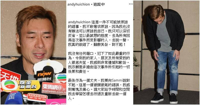 黃心穎喺今年4月被曝偷食人夫許志安,令兩個人形象一落千丈,許志安即刻召開咗記者發布會,鞠躬道歉并暫停所有工作,復工無期。