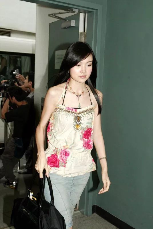 陳庭欣當年以直發中分示人,著住一身青綠色孔雀圖案連身褲,勁有夏日渡假感覺,不過當年面圓圓,有啲似日本杜如風。