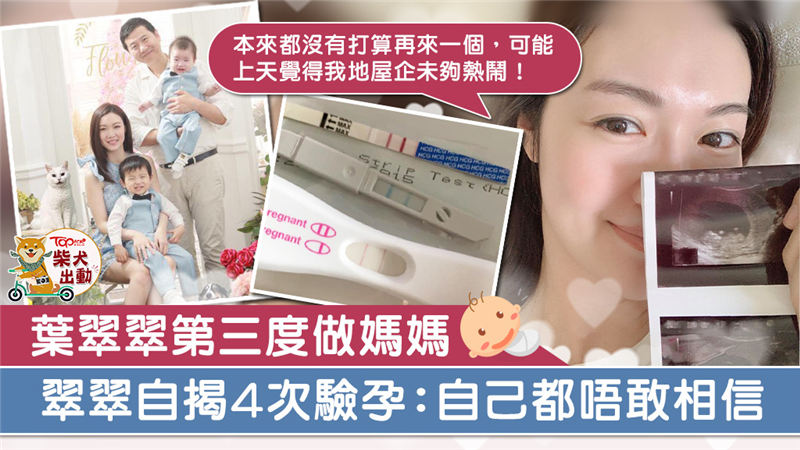之後葉翠翠接受採訪時表示:“今次係意外懷孕,當時得到證實嘅時候嚇咗一跳,因為老公Raymond認為照顧兩個仔仔已經好攰,但葉翠翠講日前發現月經遲咗,於是自行驗孕,開始以為驗孕棒壞咗,直至第四支驗孕棒都顯示相同結果,就即刻致電中醫詢問。”