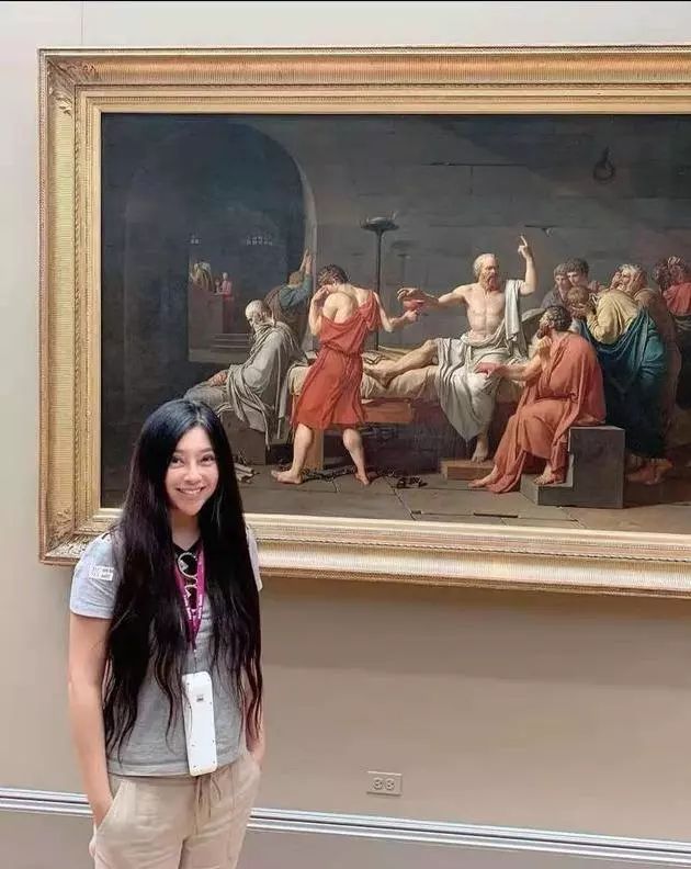 傅明憲參觀咗大都會博物館與名畫合照,但相中嘅傅明憲臉型異常尖削,驚現「蛇精臉」,加埋一對大眼,令人懷疑佢整容或者P圖過度,變得面目全非。