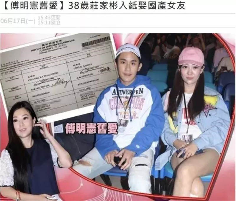 傅明憲與莊家彬拍拖以嚟,一直無名無份。據悉因為莊父一直不滿呢段相差11年嘅姐弟戀,但莊家彬并未理其父意見,兩人繼續拍拖,不過呢段戀情最終無疾而終,喺2015年3月兩個人分手,莊家彬另娶他人。